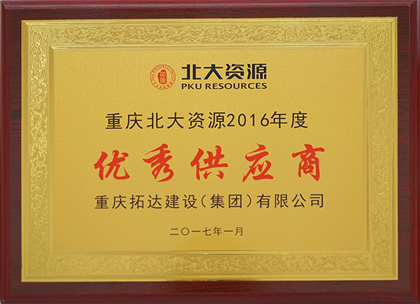 • 重慶北大資源2016年度優秀供應商